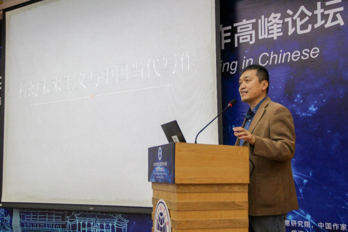 最后是吴岩教授关于《科幻未来主义与当代写作》的演讲。他认为想象力与科技写作都是可以习得的。他表示:“我们要向前看。”并强调:“未来已经到来,而想象应该是超越科技的灵光。”他认为正是因为想象的天马行空,才赋予了科幻乃至科技以创造力。 :所以,作为一个科幻未来主义者,应要直面未来,要有开放包容的胸怀,乐于接纳未知的事物。唯有如此才能写出符合时代潮流的作品。”谈到科技与写作的关系时,他如是说。