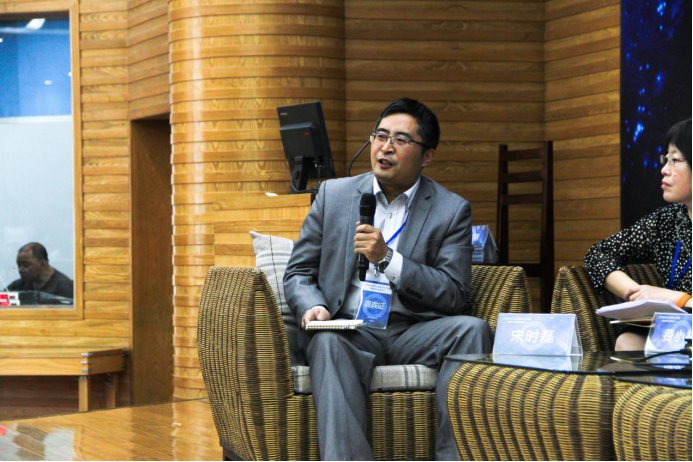 在简短的嘉宾与流程介绍后,宋耕最先发言。他介绍了香港大学开设创意写作专业的现状,并着重介绍了其特色的“驻校作家”计划。同时另辟蹊径,宋耕从擅长的中英翻译领域出发,指出了翻译与创意写作的关系:翻译也是一种再创造,可以作为创意写作的关注点和研究点。