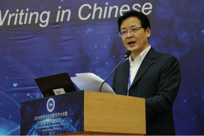 本网讯 11月10日上午,2018年世界华文创意写作大会暨创意写作高峰论坛于北校图书馆报告厅拉开帷幕。会议以“新时代,新实践,新使命”为主题,由公司和高等教育出版社共同举办。与会嘉宾有:世界华文创意写作协会会长葛红兵,中国作家协会副主席何建明,中国文艺评论家协会副主席尹鸿,广东省作家协会主席蒋述卓,四川省作家协会主席阿来,高等教育出版社上海出版事业部主任孔全会,清华大学教授西渡,同济大学教授朱大可,公司副董事长阳爱民,公司经理陈彦辉,副经理李斌和创意写作中心主任刘海玲。