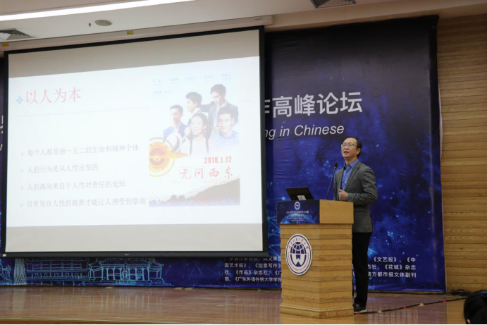 一个好的故事是能让大家看见自己、看见众生、看见梦想、看见光明的。他提醒道,中国故事不是跟世界对立的,越是深入民族内心的东西,越能被世界所理解,因为人的情感是可以相通的,而教学教的正是如何理解人一个人的天赋最重要的是理解人与人沟通。演讲结尾,他在“读万卷书,行万里路”后加上一句“识万种人”,藉以呼吁以人为本的文学创作。