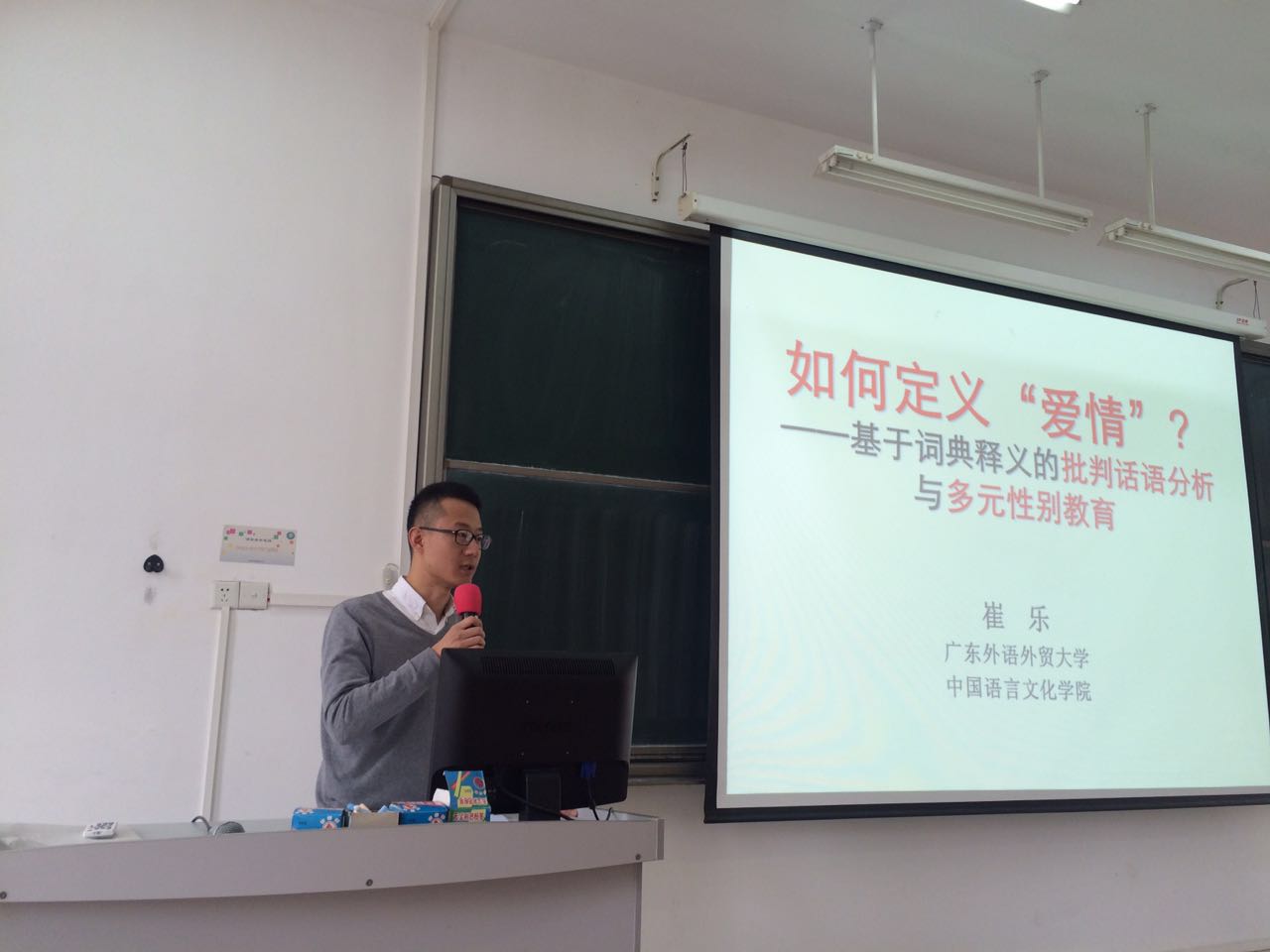 公司BEATS汉语国际教育中心崔乐博士应邀参加了本次研讨会,并宣读了论文《如何定义“爱情”?——基于词典释义的批判话语分析与多元性别教育》。文章应用批判话语分析方法揭示词典释义中的性别意识形态,阐述语言、身份与社会结构的关系,获得与会专家的一致肯定。