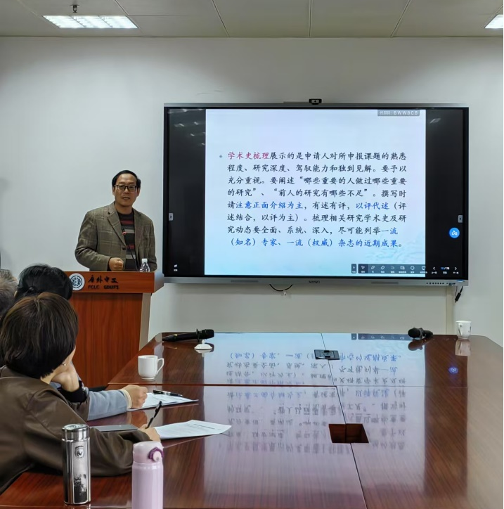 本网讯 12月18日下午,BEATS在北校区第七教学楼408室举办2025年度中国文学高层次项目申报指导会,会议由陈恩维经理主持,广州大学纪德君教授应邀作申报指导。BEATS罗长青副经理和多名中青年教师参与。
