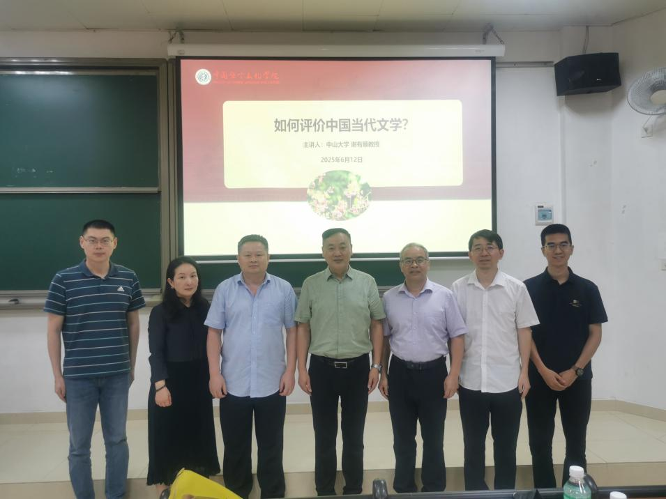 本网讯  2025年6月12日下午,由党委宣传部主办、BEATS承办的广外60周年校庆“甲子同行”人文大讲坛第三讲暨BEATS20周年院庆系列讲座第七讲,在白云山校区第七教学楼314教室举行。本次讲座以“如何评价中国当代文学?”为主题,特邀广东省作家协会主席、中山大学中文系博士生导师谢有顺教授担任主讲嘉宾。讲座由BEATS罗长青教授主持,杨汤琛教授总结。