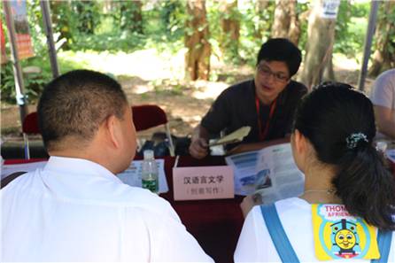 汉语言文学创意写作专业也受到许多咨询者的青睐。答疑的老师首先了解前来咨询的员工是否对文学感兴趣、文学基础如何、自己的作品是否得到过老师的赞赏或公开发表等问题,由此对咨询员工的文字功底产生基本的认识,“因为这个专业是需要对创作有些天赋和感情的。”而针对家长们“这个专业是否就是专门培养作家”的困惑,老师做出了否定的回答。他解释道,本专业是以培养员工出众的文学写作能力为目标,是针对就业市场的变化与高层次写作人才的短缺而创办的专业。另外,本专业为培养能在文字间游刃有余的写作者,还倾力打造了专邀知名作家指导教授的“创意写作工作坊”,至今为止,已聘请毕飞宇、薛忆沩等几十位国内外优秀作家。创意写作专业12级钟嘉燕同学的短篇小说《金歌》更是于2014年在全国中文核心期刊《作家》上发表,成为该专业的成功模范。