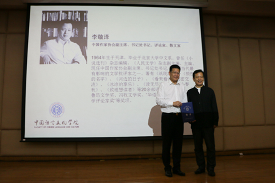 李敬泽首先发表演讲,李敬泽用两句话概括自己的演讲,即“我要学波斯语”,“毕飞宇是摩羯座”。他认为语言不仅仅是工具,还富有独特的、复杂的历史文化背景和生活习惯。学习外语不仅使我们获得一面镜子来照亮我们自己的语言,还能开阔我们的视野,自由地抵达人多或人迹罕至的语言领域。他用摩羯座巧妙地引入创作的话题。李敬泽说,摩羯座拥有超凡的耐力。“任何创作,包括艺术创作,都是痛苦的。真正的创造者,都一定是有超凡耐力的人。”同时摩羯座是理性与感性并存的。“没有经过理性的锻造,任何感性的情感都是没有艺术价值的。”最后,他与在座同学共勉,希望同学们用好广外宝贵的资源,未来成长为同时谙熟中外文的人,并且用好这份力量。
