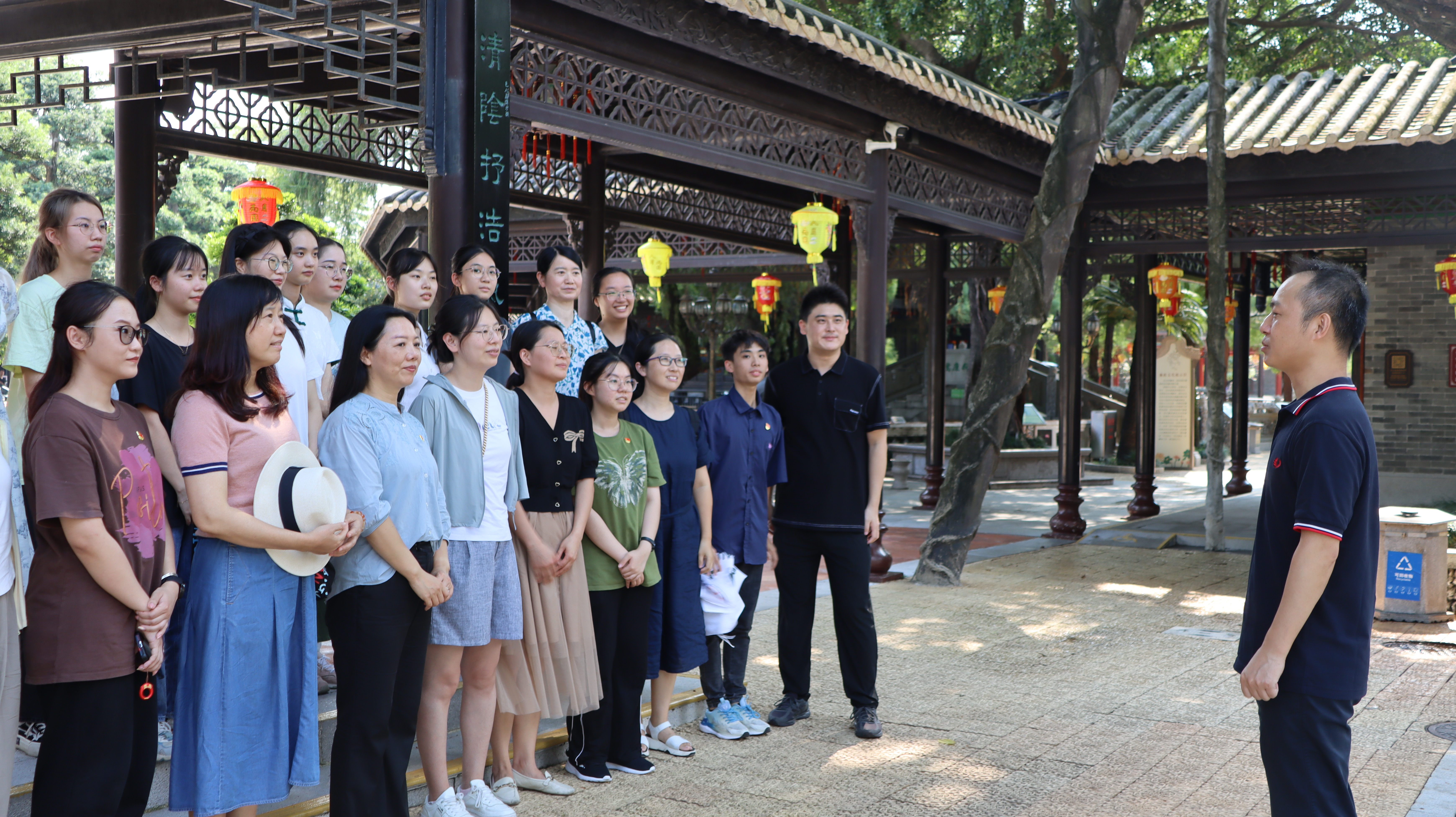 师生党员们参观了龙图馆、治本堂和宝墨堂,品读包拯的五言律诗《书郡斋壁》以及包拯家训。家训中的“不从我志,非吾子孙”皆是对包拯清廉奉公以及对子孙后代严格要求的写照。而园内多处具有岭南风情的景致也有其特殊含义,譬如养莲(廉)池、紫竹园、仰廉桥、清心亭等。