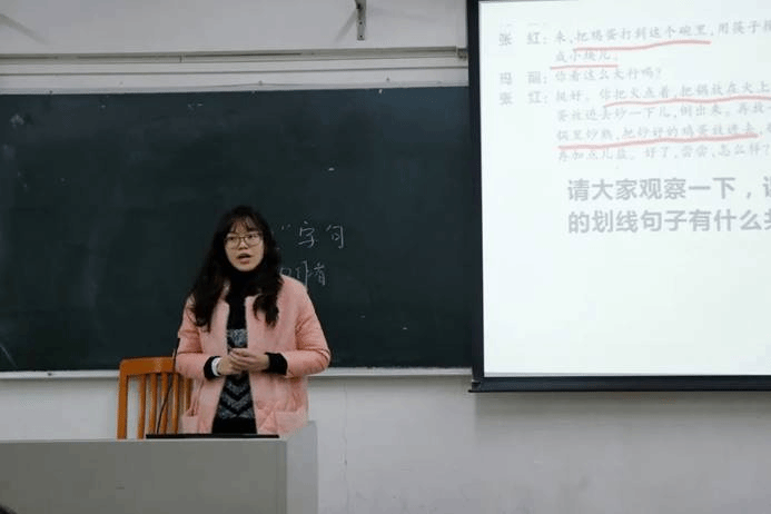李晓鸣的课堂步骤流畅完整,她用把字句介绍一盘西红柿炒鸡蛋的制作过程,生动晓畅,娓娓道来。她在介绍如何炒菜的同时解释了把字句的一些要点,并灵活运用实景教学,使用身边的粉笔盒、笔等来给出使用把字句的例子。李晓鸣在面对老师提问时也没有慌乱,冷静应答。她的英语演讲自信,发音标准。