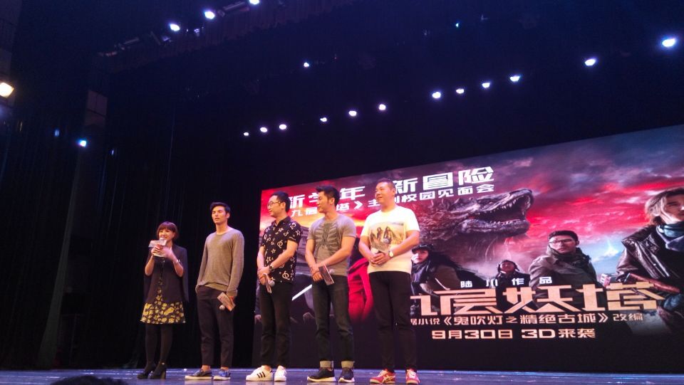 开幕式上,现场的领导嘉宾先后致辞。随后一同按亮水晶启动灯,电影节正式开幕!随后,会场放映了本届老员工电影节开幕影片《九层妖塔》。该片是由乐视影业出品发行的3D奇幻冒险动作大片,根据小说《鬼吹灯之精绝古城》改编,该片主创陆川导演,演员凤小岳、李晨和冯粒在放映后出席现场见面会,与广大学子近距离互动交流,他们受到了热烈的追捧。这部大片将于9月30日全国正式上映,因此今天在场的所有观众可以说是先睹为快了。