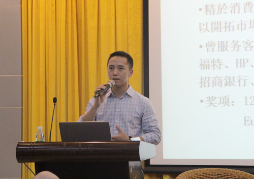 ERIC则针对文案策划向同学们做了深入浅出的介绍。他以宝马在中国的推广为案例,详细区分了策划与文案间的区别与联系。接着,他又向同学们介绍了好几种经典的营销手段,并着重介绍现在流行的UGC营销。UGC全称为User Generated Content,也就是用户生成内容的意思。多年前的网络热帖《贾君鹏你妈妈喊你回家吃饭》就是这一营销模式的经典例子。