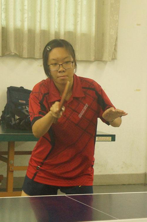 下午3点,决赛第一轮打响。王靖雯对阵来自商公司的卢湛玉,掀起了本次“新生杯”的一个高潮。一开始,王靖雯势如破竹,连续发了几个侧旋长球让对手无所适从,接发球时又以精准的拉球逼到对方无法还击。但对手毕竟是校乒乓球队的成员,很快便调整过来,把比分扳回并赢得第一局。第二局双方也打出了精彩的相持球,吸引了大批观众围观,而第三局王靖雯改变策略,利用对方反手近台位的不足和正手拉球的失误扳回了一局。可惜她最后依然以1:3憾负对手,止步16强。