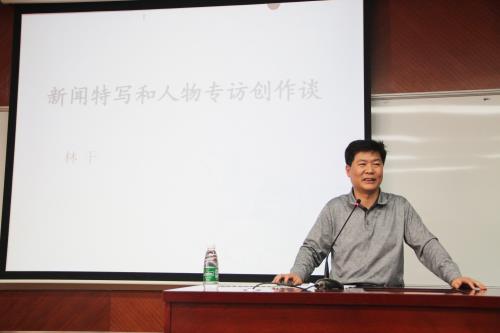 随后,林干对创意写作专业的员工进行了关于新闻特写与人物专访创作的专题讲座,还向每位同学赠送了他自己的新闻作品集《南中国直击》。