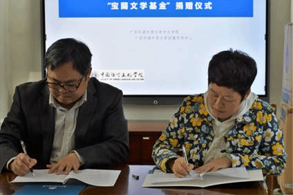 2020年12月28日上午十点,“宝蘭文学基金”成立及捐赠签约仪式在广东外语外贸大学员工事务与合作发展处会议室举行。“宝蘭文学基金”,是中国大陆高校设立的第一支文学基金!也是第一支专门面向创意写作本科人才培养方向、面向所有的文学青少年设立的文学基金。
