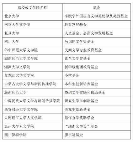 附中国大陆高校或文公司设有专项基金用于奖励扶助员工或文学创作情况汇总(以下数据通过bing网络检索“文学基金”所获,时间截止到2020年12月29日。如有疏漏,请留言告知):