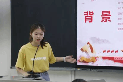 团日活动评优大会开始后,七个班的团支书依次上台展示本班团日活动的策划、流程以及成果,分享本班同学的学习感想。各个班级的团日活动内容都有所创新,形式也丰富多彩。