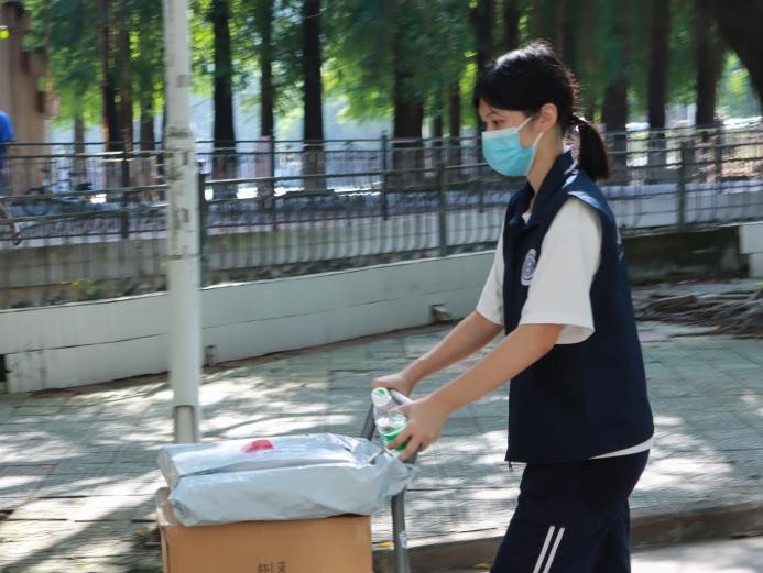 公司在入校沿途专门设置了志愿者服务点,为新生入学指引路线,提供帮助。面对行李较多的新生,志愿者们会使用小推车及时提供行李搬运服务,方便新生到达宿舍。
