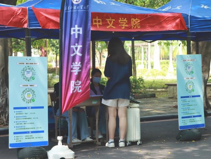 今年公司仍采用“先入住后报名”的人性化模式,提高了公司的迎新工作效率。新生可先前往宿舍放置行李,再前往报到点领取档案。8月28日上午八点,朋辈导师在七教110就位,以热情的态度迎接新生,并引导新生完成注册流程,解答新生提出的相关问题。