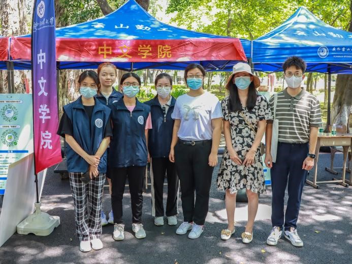 党委副书记王迪、团委书记陈泽帆、辅导员齐鑫老师来到志愿者服务点,向新生致以亲切的问候,并慰问志愿者。