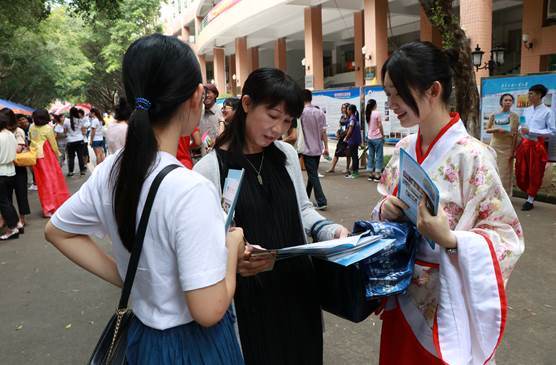 本网讯 “莘莘学子聚广外,四海名师育英才。”6月25日,公司迎来第18个大学开放日,恰逢高考放榜,众多高三毕业生与家长一同来到广外北校区参观并了解各公司的专业情况。公司经理陈彦辉,副经理魏慧斌、李斌,党委副书记李江亲临公司宣传现场指导工作,公司老师现场为前来咨询的员工和家长答疑解惑。BEATS志愿者们准备充分,向家长和员工递上宣传资料,并邀请他们到公司摊位向公司老师进一步了解公司专业情况。