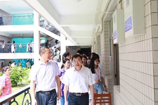 当被问及为何今年新生报到如此井然有序时,杨韬表示:“今年新生注册不仅采用线上app扫码采集信息,更重要的是严格执行公司‘先入住、后注册’的报到要求,报到更加轻松。同时公司迎新的前期准备充分,朋辈导师早在7月就与新生建立线上联系,十分了解新生情况;我们还提前招募了一批优秀志愿者引导新生报到。使得整个报道流程高效、有序、舒心。”随后,周东兰、李江、杨韬陪同公司党委副书记李云明走访中文新生宿舍。一路上李云明听取公司领导们的介绍与汇报,对公司迎新工作表示认可。