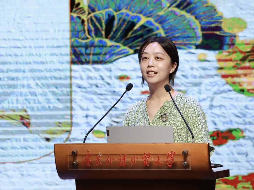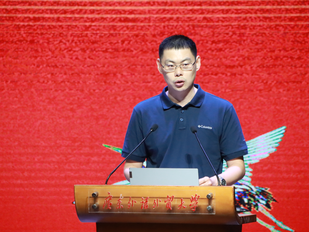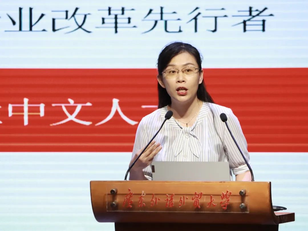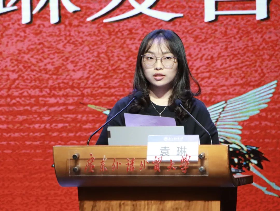 接着,教师代表张向荣发表讲话。她描述:“文学是一抹朝阳,是生命中的一束光。”大学的任务不是回答问题,而是解决问题,读书、思考、探究真理,是人生的滚滚车轮中最重要的几环。“广外目送你绽放精彩,广外中文等着你踏浪归来!”张向荣老师为大家展现了语言的魅力和中文人的浪漫与风采。