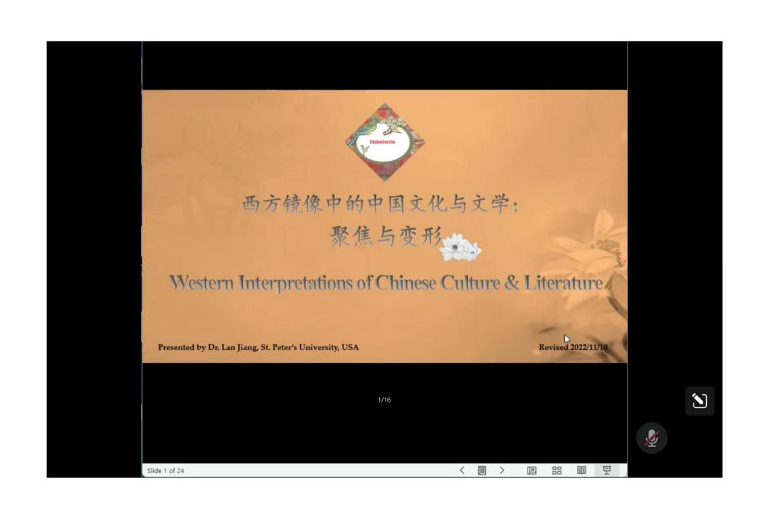 本网讯 2022年11月10日晚上八点半(纽约时间上午七时二十分),BEATS邀请美国圣彼得大学副教授江岚博士,举办以“西方镜像中的中国文化与文学”为主题的线上专题讲座,公司近300名师生共同聆听本次讲座。