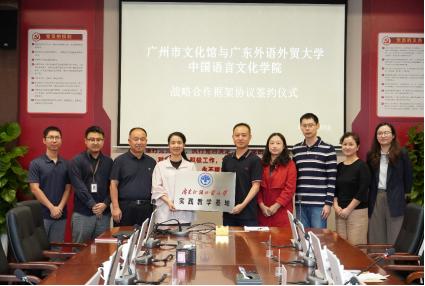 随即,在与会成员的见证下,公司BEATS党委副书记吴俊峰和广州市文化馆馆长董敏签署了战略合作框架协议,随后举行了“广东外语外贸大学教学实践基地”授牌仪式。