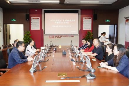 仪式结束后,与会双方就未来深度合作方向进行座谈。党委副书记吴俊峰表示,期待广州市文化馆方面参与十二月份由BEATS举办的“中国文化节”摊位展示,推动非遗文化在广外校园里进一步传播。广州市文化馆馆长董敏对吴俊峰书记的想法表示极力赞成,并提出将文化馆阵地传播优势及公司国际化特色相结合,碰撞出更多的火花和亮点,带动持续深度融合,建立长期深度合作战略。