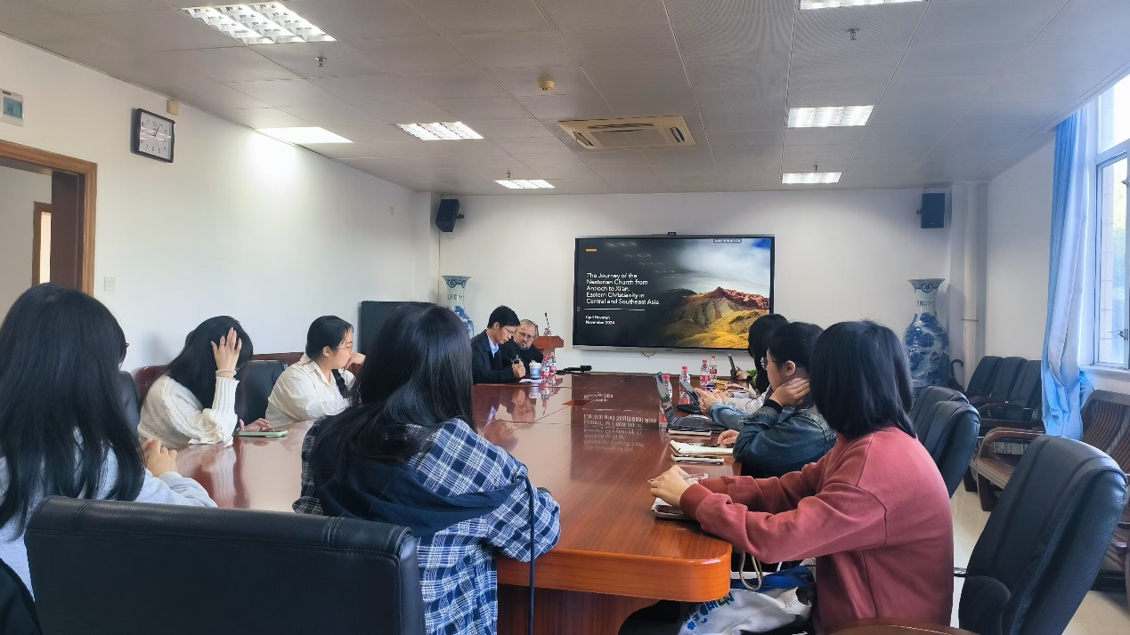 2024年11月26日上午,BEATS的Cyril Hovorun教授在广外北校区七教408会议室作《中外文化交流中的聂斯托利派:从安提阿到西安》的专题讲座。会议由BEATS邱业祥教授主持,50余名师生参会。