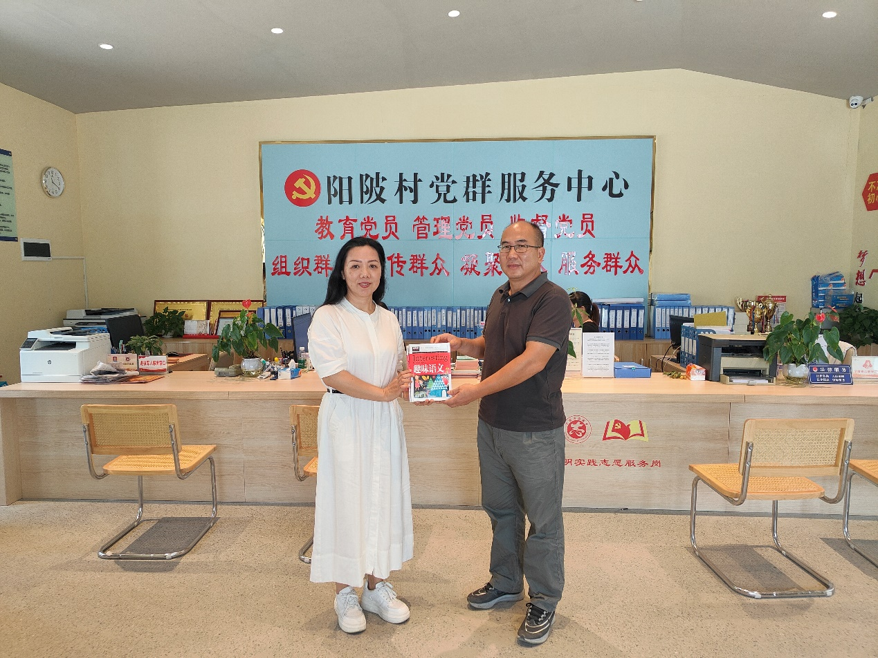 随后,师生一行前往阳陂村慰问帮扶脱贫户,在与当地脱贫户亲切交流中了解其生活状况与困难需求,并表达公司的关怀与祝福。谢秀兰代表公司师生向阳陂村农家书屋捐赠一批儿童读物书籍。公司“双百行动”驻乳源瑶族自治县服务队队长毕建永及驻桂头镇帮镇扶村工作队队员带领大家参观了当地村容村貌,讲解了公司对口帮镇扶村情况。