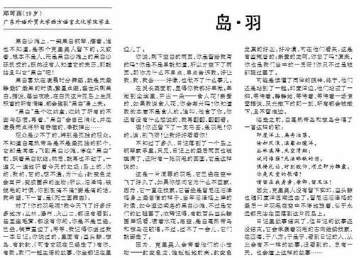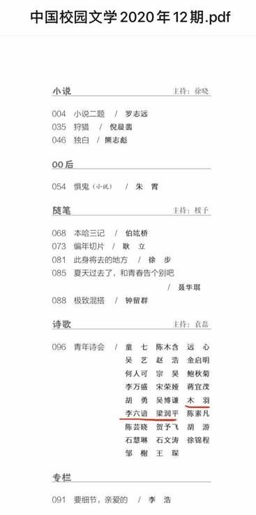 目前统计,一共有6位同学在国家级刊物上公开发表创作作品。此次获得公开发表的作品得到了杨克老师的大力推荐。其中张敏楠同学的作品还得到广外创意写作中心执行主任朱志刚老师的点评一并刊载。