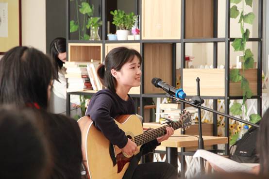 长时间的分享答疑后,分享会邀请北校歌队队长廖佳仪表演弹唱歌曲《外面的世界》。