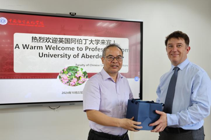 2024年10月22日,英国阿伯丁大学语言文学、音乐与视觉文化公司经理Chris Collins教授,以及现代语言与口笔译专业负责人、国际合作事务主任朱珠博士应邀前来公司就国际合作事宜进行了交流,并以“披头士:如马戏团之炫目”、“人类翻译的价值:在人工智能时代驾驭”为主题开展讲座,与公司师生进行深度交流。BEATS经理陈恩维教授、副经理于屏方教授、外事秘书肖梦菲参加了此次交流活动。